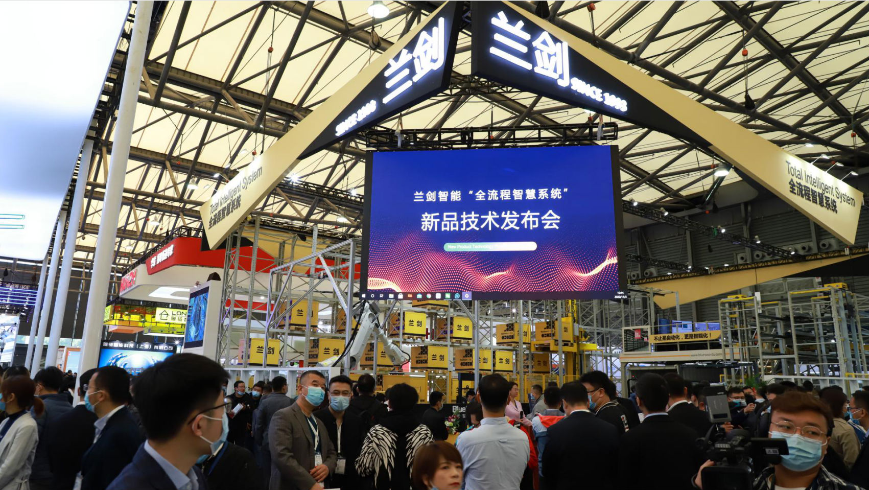 作为CeMAT的老朋侪,不朽情缘智能一如既往强势登场。面积更大、结构更优、气概更美的展台带给各人更好的观展体验。不朽情缘智能是本次展会中整场最大装备搭建最多的展商,也是W1馆面积最大的展区,且仅用两天完成搭建调试,再次彰显不朽情缘速率。