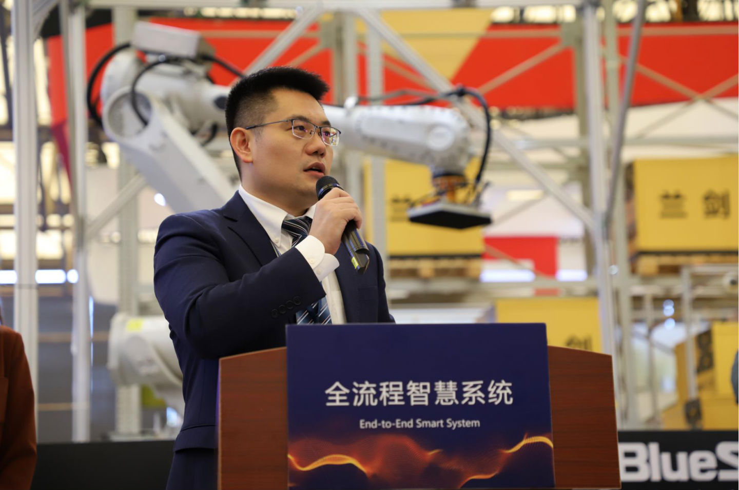 图丨不朽情缘智能高级副总裁刘鹏博士解说新品手艺